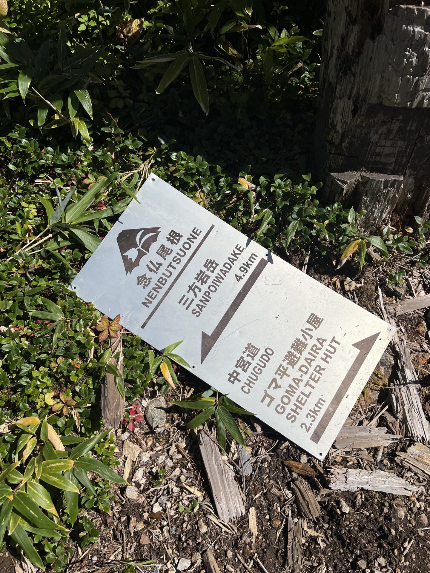 例え熊にやられて落っこちた看板であっても、人工物に出会いなぜかホットする。