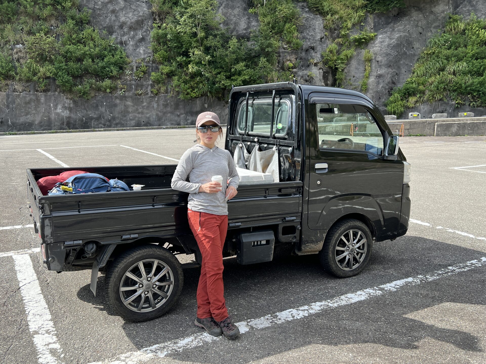 運転免許証を持っていた私がお借りした軽トラックを運転し、いったん登山口まで戻りパートナーはマイカーを運転。