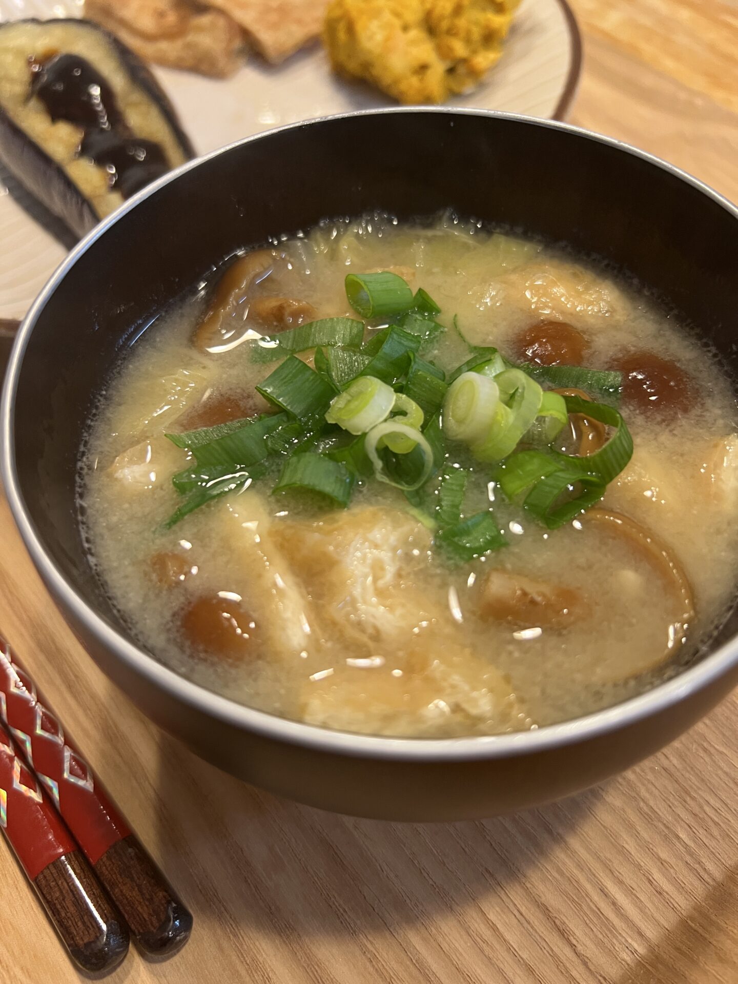 ナメコ料理の中でも定番中の定番ですが、お味噌汁にしていただきました。